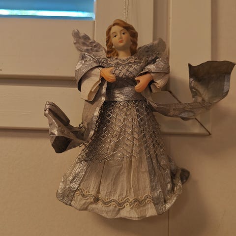 Kaunis joulun enkeli, tehty käsin makrame-tekniikalla. Sopii hyvin joulukuuseen tai lahjaksi.