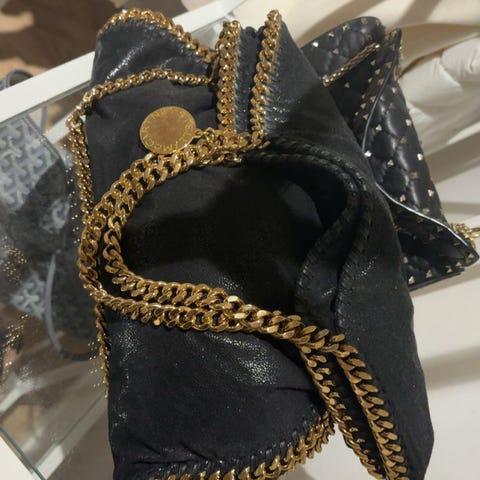 Stella McCartney Falabella Mini Tote Bag kuvien mukaisessa kunnossa. Ketju on hieman tummunut käytössä, mutta muuten laukun kunto on todella hyvä. Jos ostat marraskuun loppuun mennessä, voimme myydä laukun hintaan 200€.