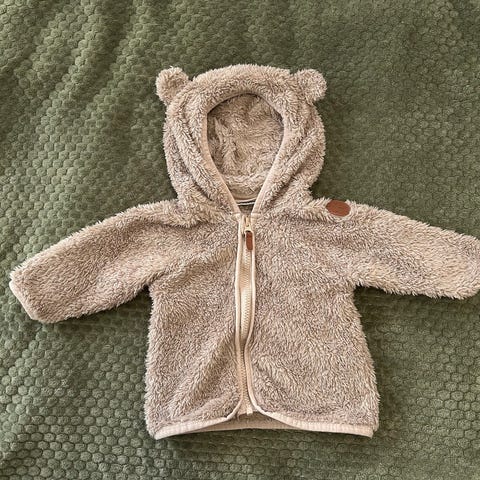 Vuoritettu lämmin pehmeä takki, hupussa nallenkorvat.