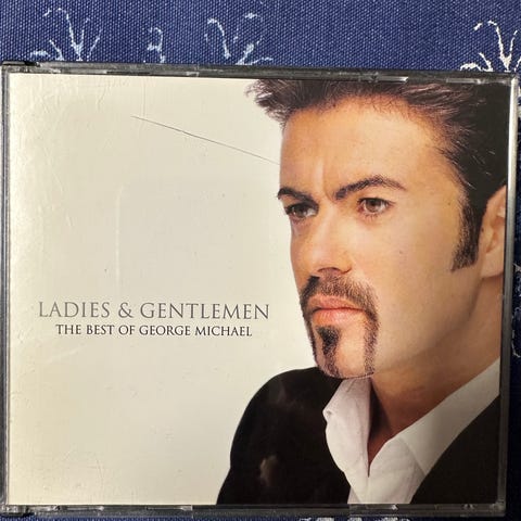 George Michael Ladies & Gentlemen CD-levy kokoelma sisältää artistin parhaat kappaleet. CD on fyysisessä kotelossa ja sisältää useita tunnettuja kappaleita eri albumeilta.