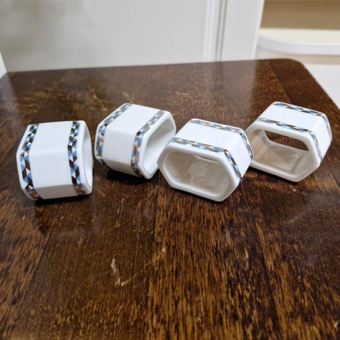 Kuvan mukaiset lautasliinarenkaat.