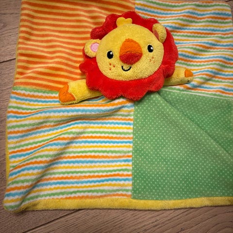 Fisher-Price pehmolelu, jossa on karhun muotoinen design. Pehmolelu on pääosin keltainen, punaisella paidalla. Sopii lasten leikkeihin ja pehmolelukokoelmiin.