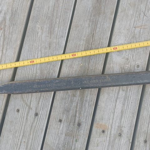 Rautainen taltta, jossa on käyrä varsi ja litteä pää. Sopii esimerkiksi naulojen irrottamiseen tai purkutöihin. Väri sinertävä, materiaali metalli.