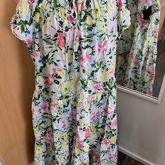 Myydään upea, olkaimeton kesämekko näyttävällä violetti-sinisellä kukkakuviolla. Täydellinen vaate kuumiin kesäpäiviin!