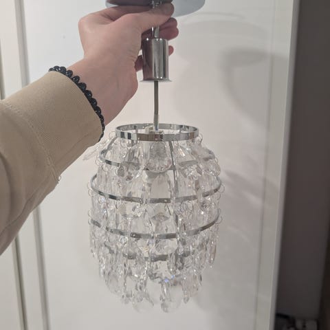 Kuvien mukainen hyvä kuntoinen kristallinen kattokruunu.