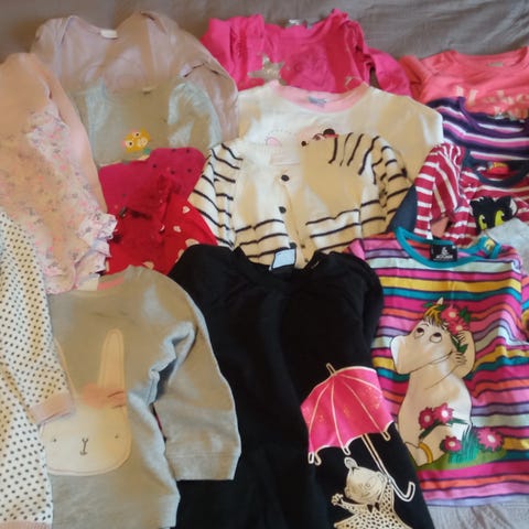 Myydään settinä 4kpl ohkaisia pitkähihaisia paitoja koossa 86. Olleet meillä päiväkotikäytössä. Mielestäni ok kunnossa seuraavalle, en ole syynännyt.
