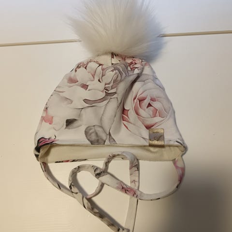 Hieno ompelijalta tilattu tupsupipo solmittavilla nauhoilla. Koko n. 46-48 py. Merinovillavuori. Vuori hieman nukkaantunut. Nyt ei pesty kun en ole nähnyt tarpeelliseksi. Tupsu irrotettavissa.
