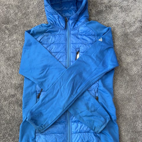 MCKINLEY ulkotakki sinisenä, koko S. Takissa on huppu ja vetoketjutasku rinnassa. Kevyt ja lämpöä eristävä materiaali, sopii ulkokäyttöön.