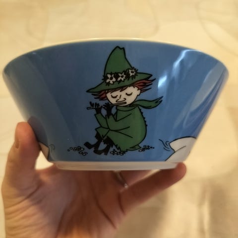 Myydään aivan ihanan värinen kulho: Arabia Muumi Moomin Tiuhti ja Viuhti eli Thingumy and Bob -kulho. Tässä on todella raikas vihreä ja säihkyvänpunaisen Kuningasrubiinin hohde. Säihke 🤩 Kai tämä on joku puurokulho tms. Oikein soma kokoinen kulho aamupuurolle.