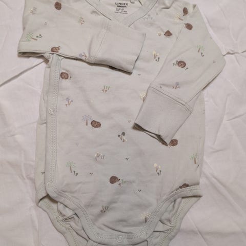 Body on kietaisumallinen nepparikiinnityksellä ja alhaalla on kahdet nepparit antamassa kasvunvaraa; vaate menee siis pienelle pidempään. Hyvät resorit hihoissa.