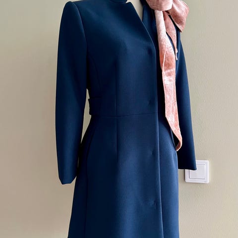 Pierre Cavallon aito vintage-tyylinen kiristysnyörillä varustettu takki värikkäällä sinisellä painatuksella. Koko S.