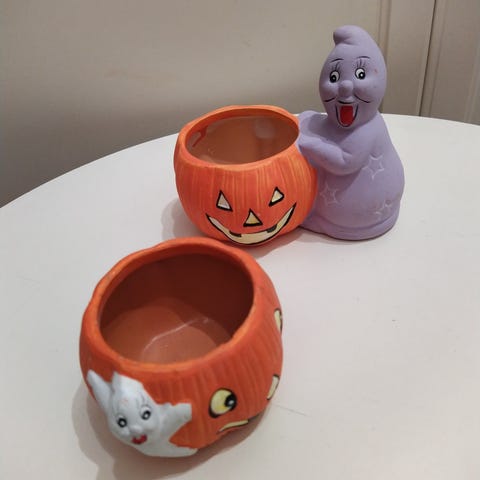 Halloween vuokia 2kpl. Toinen silikoninen: kurpitsa naamoja ja toinen metallinen jossa pääkalloja. Myydään molemmat vuuat yhdessä. Molempia käytetty vain kerran eli rittäin hyvässä kunnossa.