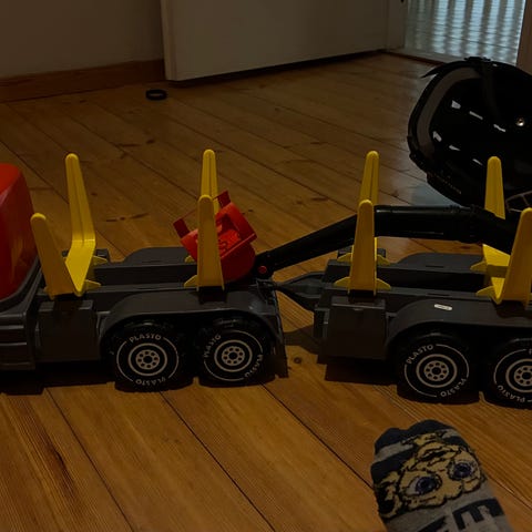 Joululahjaksi saatu Plaston tukkirekka, sisäleikeissä ollut vähällä käytöllä.