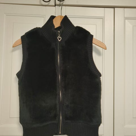 Myydään LINDEX karvainen liivi / karva liivi hupulla koko 122cm