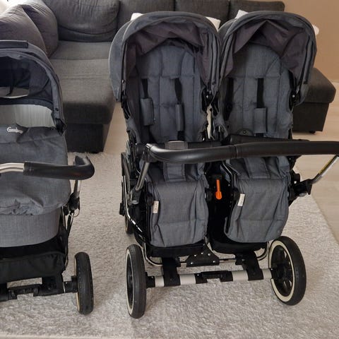Pieniä kulumajälkiä työntöaisassa, niistä kuvat. Jotain pientä jälkeä vaunukopan sisällä, en ole koittanut pestä. Toimivat ja hyvät tuplat seuraavalle kaksikolle 😊 Isojen renkaiden ansiosta kulkee hyvin myös lumessa. Hintaa voi myös tarjota 🤎