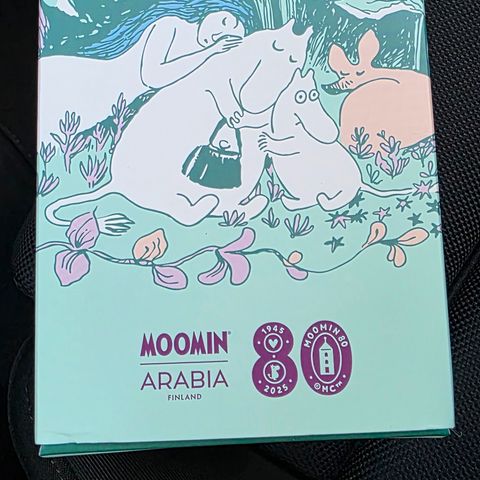 Uusi käyttämötön, tarrallinen muuminpäivä muki vuodelta 2021. Säilytetty omassa pakkauksessaan, kuvauksen ajaksi otettu pois.