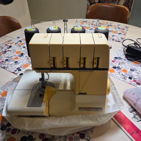 Käytetty vain pari kertaa. Koneessa useita säätönuppeja erilaisille ompeleille ja kireyksille. Mukana jalkapoljin. Soveltuu erilaisten kankaiden saumojen viimeistelyyn.