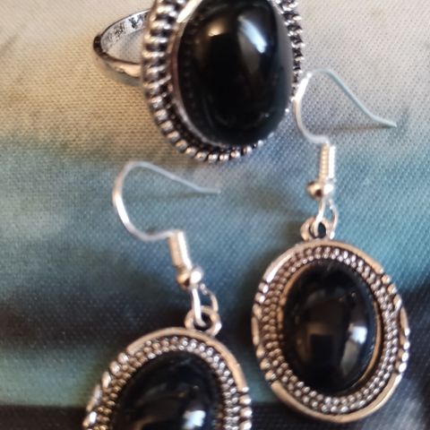 Nappikorvikset, riipus ja sormus delfiini-aiheella. Ei leimoja, ostettu Kreikasta. Sormuksen koko n. 17mm. Sormus on yläosasta delfiinien välistä avoin, joten antaa tarvittaessa hiukan joustoa.
