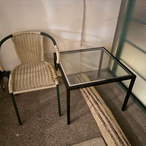 Myydään tilan puutteen takia tyylikäs lasipöytä ja neljä tuolia terassille, parvekkeelle tai pihalle.