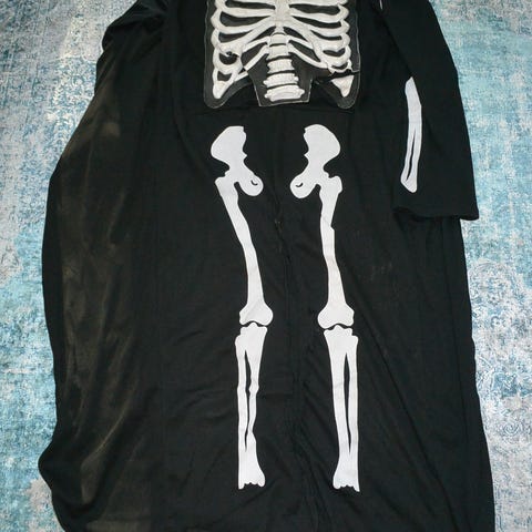 Lasten luuranko naamiaisasu. Koko M, noin 140 cm / noin 10-vuotiaalle. Pehmeää kangasta, erittäin hyväkuntoinen.