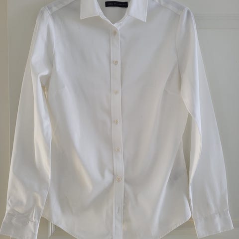 Valkoinen t-paita säädettävillä hihoilla. Materiaali ei ole joustavaa.