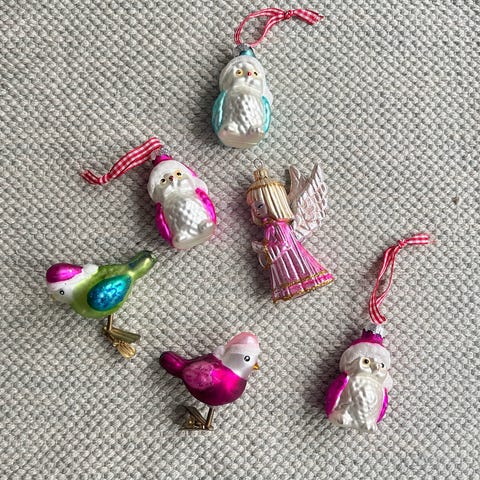 Kauniit lasiset joulukoristeet, 3 kpl., käsinmaalatut.