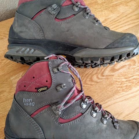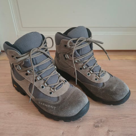 Koko on merkitty 40, mutta minulla on koko 38 ja ne sopivat minulle hyvin – voivat siis olla pienet oikeasti kokoa 40 käyttävälle. Käytin näitä kerran vaelluksella Islannissa, ja ne pelastivat minut monelta. Myyn ne, koska ne painavat jalkapöytääni. Vedenpitävä pinnoite on uusittu jonkin aikaa sitten.