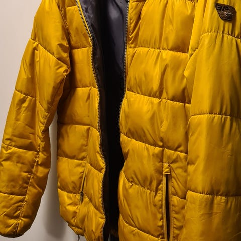 Takki on hyvässä kunnossa (ehjä, ei saumavaurioita tai reikiä), mutta hihoissa on pieniä käytön jälkiä. Tässä takissa on höyheniä eristeenä, ja se on erittäin lämmin.