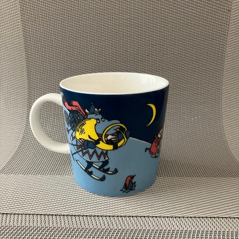 Arabia Muumi muki, jossa on värikäs kuosi ja Pikku Myy -hahmo. Muki on valmistettu keraamisesta materiaalista ja soveltuu käytettäväksi esimerkiksi kuumien ja kylmien juomien nauttimiseen.