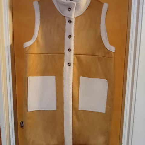 Myydään käyttämättä jäänyt pehmeä Adeline-liivi, merkki Marta du Chateau, koko L/XL. Väri camel. Kelsiturkki jäljitelmää. Sisäpuoli teddykarvaa.