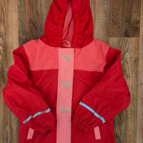 Lupilu vaaleanpunainen fleecevuorellinen sadetakki. Koko 110/116. Hyvä käytetty kunto. Ehjä. Nimikoitu.