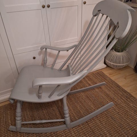 Kauniisti entisöity vanha keinuoli.