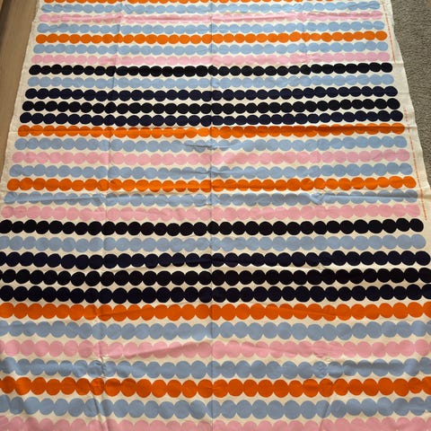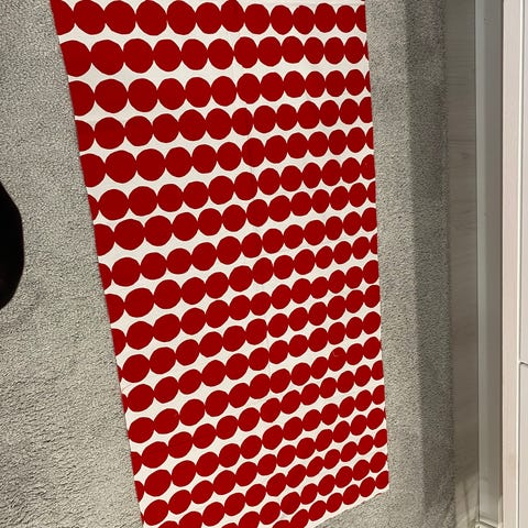 Punainen/ vaaleanpunainen Marimekko räsymatto panama 152x162 cm , esipesty hajusteetta