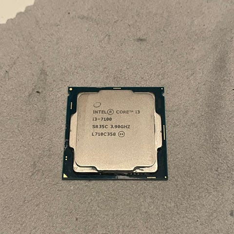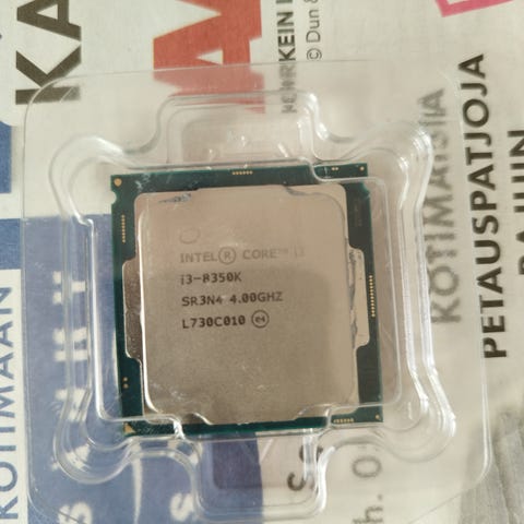 Intel Core i3-8350K prosessori, kellotaajuus 4.0 GHz. Mukaan tässä kiinni ollut prossutuuletin. Kelpaa peruspelaamiseen. Ei kelloteltu yms ja irroitettu suoraan käytöstä.