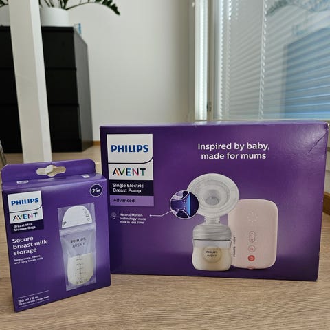 Philips Avent rintapumppu, sähköinen malli. Mukana kaikki rintapumpun osat. Sopii ainakin Philips Avent pulloille sekä MAM tuttipulloille. Ostettu uutena heinäkuussa 2025, ollut käytössä noin 4 kk. Steriloitu ja puhdistettu suositusten mukaan aina käytön jälkeen.