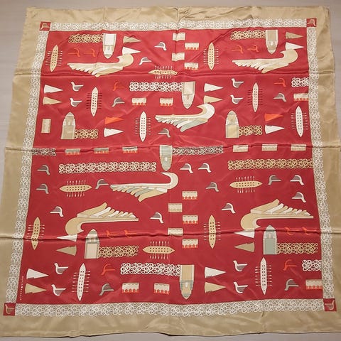 Uudenveroinen. Sinisen/beigen/sinapinkeltaisen sävyjä.