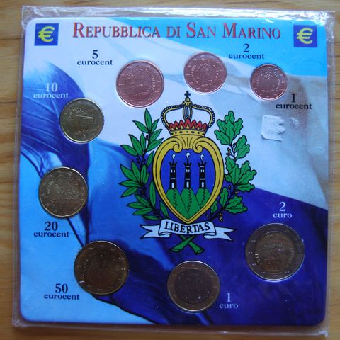 Kuvien mukaiset, hyvässä, uudenveroissa iskussa olevat San Marino rahasarjat eurokolikoiden keräilijöille.