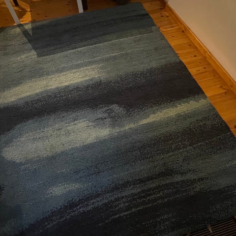 Sininen keinokuitu matto, koossa 117 x 230 cm. Matto on noudettavissa Vantaalta tai toimitus maksua vastaan.