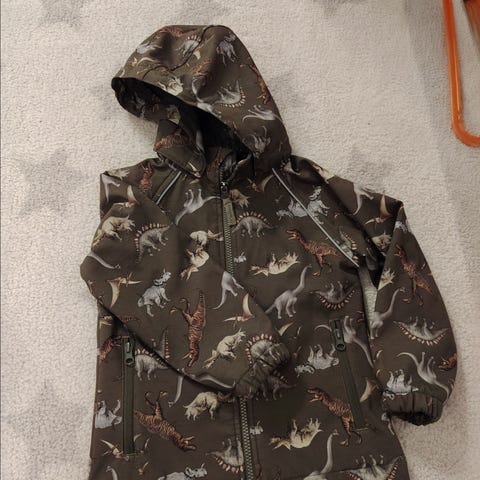 Yhdellä lapselle käytössä ollut Softshell takki, lämmin, hyvän pituinen ja Hyvänkuntoinen ei repeämiä. Voi olla tahroja