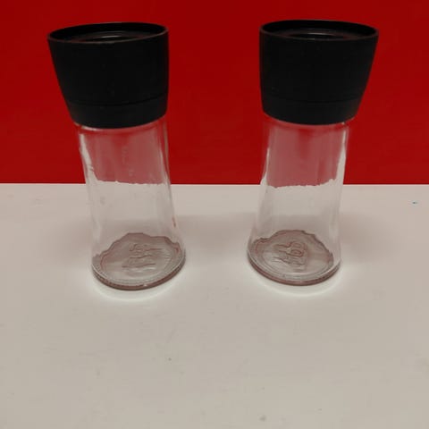 Ruskea lasipurkki ja pieni kirkas. Molemmissa korkki joissa ei tiivistettä.