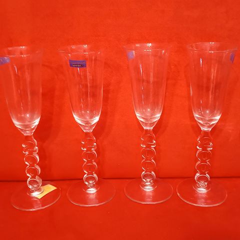 Hyväkuntoiset shampanjalasit tai kuohuviinilasit 4kpl joissa vuosi 2000 ja tähtiä. Korkeus n.20cm. Vain nouto.