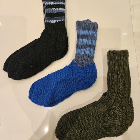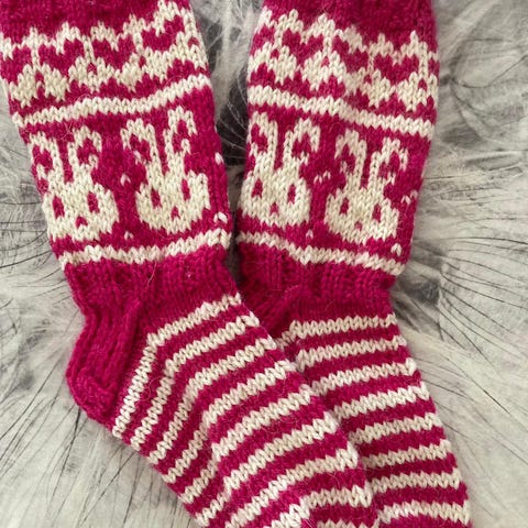 Mammani kutomia uusia villasukkia & lapasia. Merkattu sukkiin jalkaterän pituus, lapasiin kämmenosan leveys x pituus.