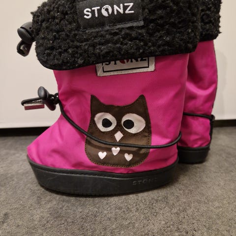 Meille uutena ostetut ja yhdellä käytetyt. Erittäin lämpimät paljasjalkakengät, eikä näihin tarvita erillistä lineria. Käsitelty suojasuihkeella. Edessä kankaassa on muutama aivan minimaalinen moite, pieniä reikiä päällimmäisessä kankaassa ja pieni tahra, jotka eivät vaikuta käyttöön, sekä Stonz-tekstit ovat osittain kuluneet (ks. kuvat). Muutoin erittäin hyvässä kunnossa.