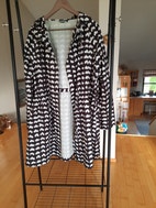 Uuden veroinen kevyt sadetakki. Huppu , taskut ja vyötärön kiristysnauha ovat tärkeitä yksityiskohtia. Koko XL, mutta käy toki pienemmillekin sadesään kulkijoille.