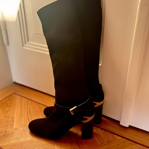 Mokkanahkaa Sukkamallinen varsi ja sivulla vetoketju. Nämä vain muutaman kerran jalassa joten hyvässä kunnossa ovat. Korko 12cm. Voin postittaa postit lisätään hintaan en käytä toridiiliä