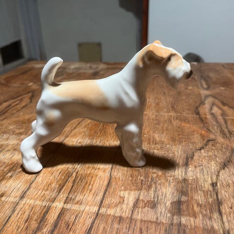 Lomonosov posliini villakoira, valkoinen väri. Tuotteessa on punainen LFZ leima pohjassa.