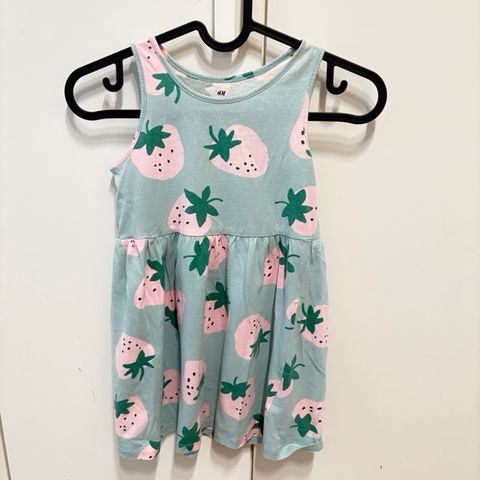 H&M lasten mekko 110 cm vaaleanpunainen mansikkakuosi tytöille