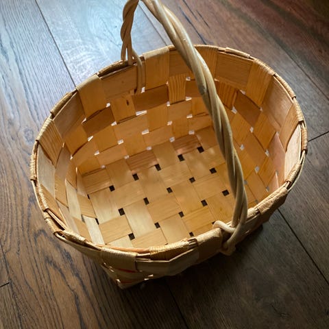 Kaksi ehjää ja suht. siistiä pärekoria. Olleet lapsilla marjakoreina, siksi toisessa sisäpohjassa mustikkatahraa. Koot: 15x25x12cm ja toinen 20x20x15cm. Tukevat kantokahvat. Yhteensä 5e/kpl.