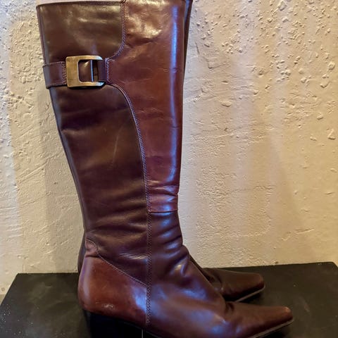 Laadukkaat ja pitkäikäiset nahkaiset kengät, jotka kaipaavat suutarin palveluita korkojen osalta palatakseen loistoonsa. Tämä huomioitu hintapyynnössä. Ovh noin 120 euroa.