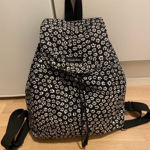 Marimekko Kangas reppu, musta väri, unisex-malli. Reppu on valmistettu kestävästä kankaasta ja siinä on useita vetoketjutaskuja sekä säädettävät olkahihnat. Sisätilat ovat tilavat ja sopivat erilaisten tavaroiden kuljettamiseen. Kapseli reppu,